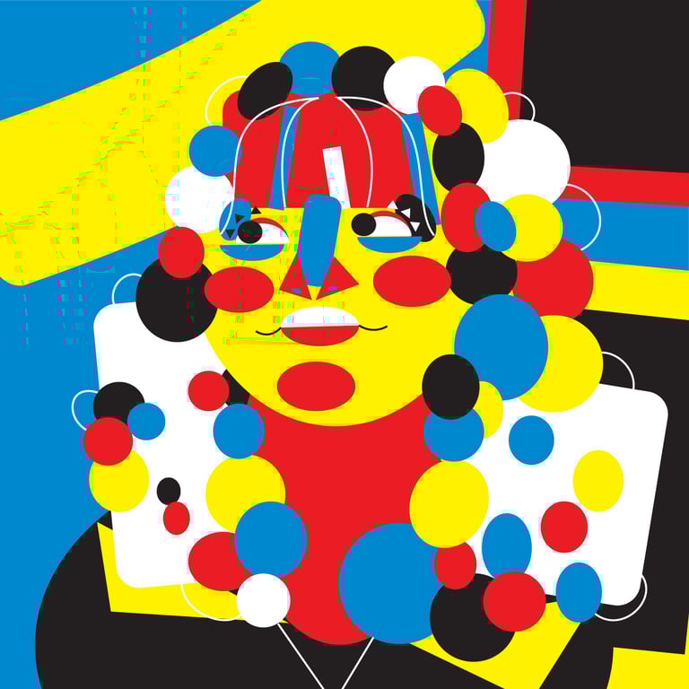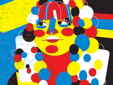 "Colored Self Portraits", Adobe Illustrator, 5 in x 5 in, Spring 2025, ART 2450 Intro to Graphic Communication