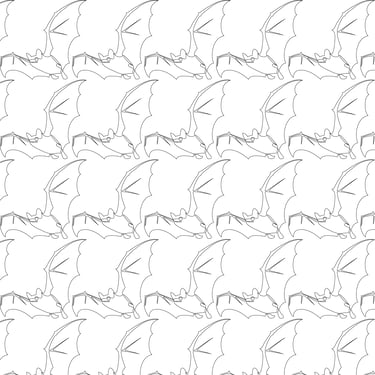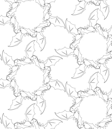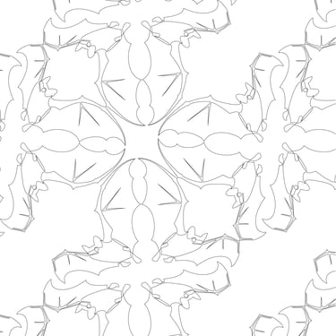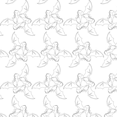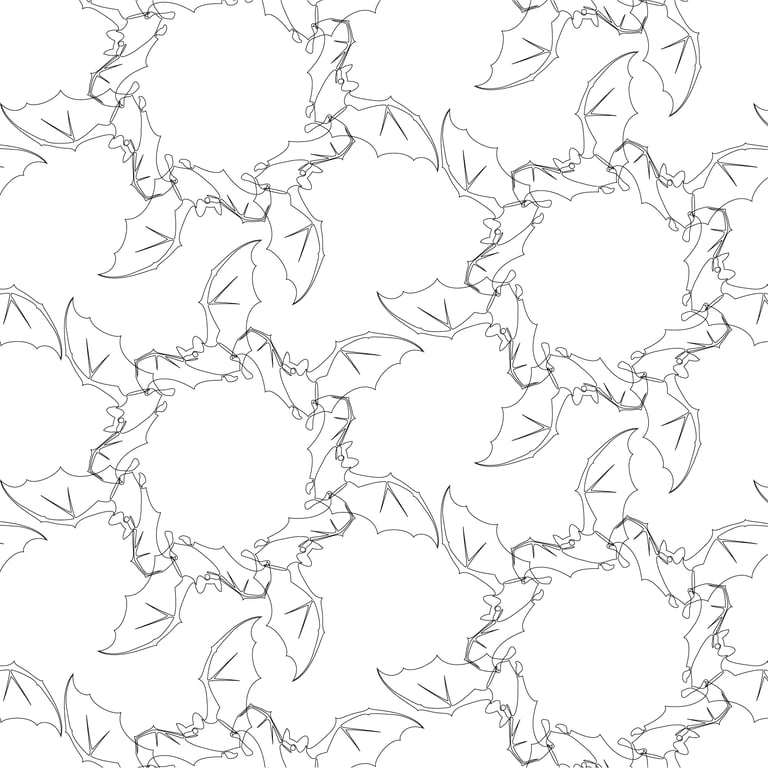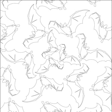 "Bat Patterns Black and White", Adobe Illustrator, 5 in x 5 in, Spring 2025, ART 2450 Intro to Graphic Communication