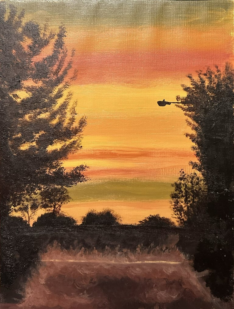 "Landscape Painting", Acrylic Paint on Canvas, 12in x 9in, Fall 2024, ART 1020 Two-Dimensional Design & Color