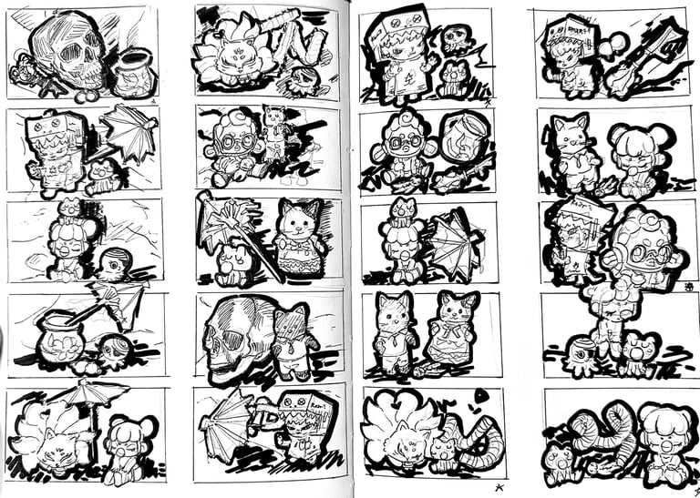 "Figure Sketches", Ink on paper, 9in x 12in, Fall 2024, ART 1020 Two-Dimensional Design & Color