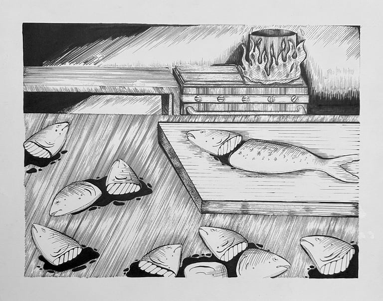"Fine-Line Drawing", Ink on Paper, 11in x 14in, Fall 2024, ART 1020 Two-Dimensional Design & Color