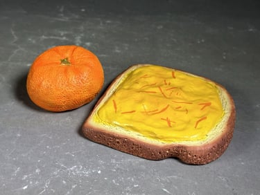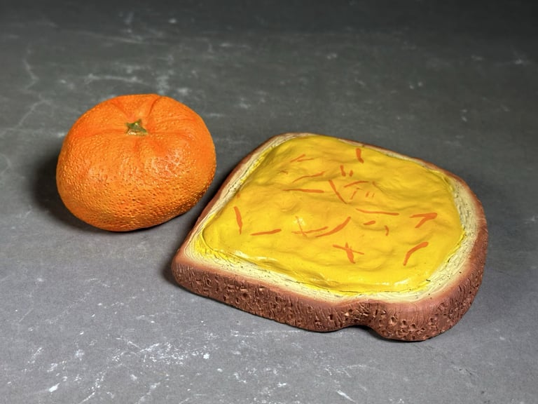 "Food Item", Clay and Acrylic Paint, 3.5 in x 4 in, and 2 in x 2 in, Spring 2025, ART 1030 Three-Dimensional Design