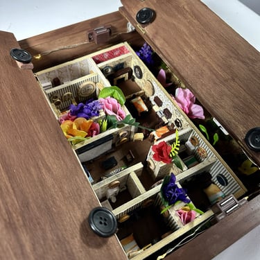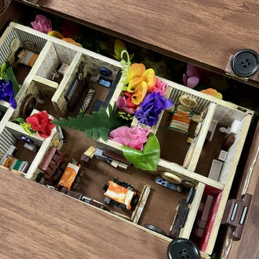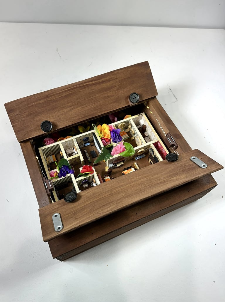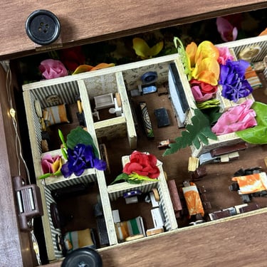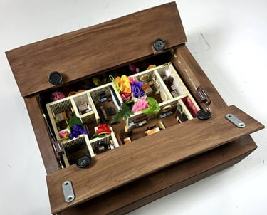 "Assemblage Project", Wood, Fabric, and Acrylic Paint, 12 in x 12.5 in, Spring 2025, ART 1030 Three-Dimensional Design
