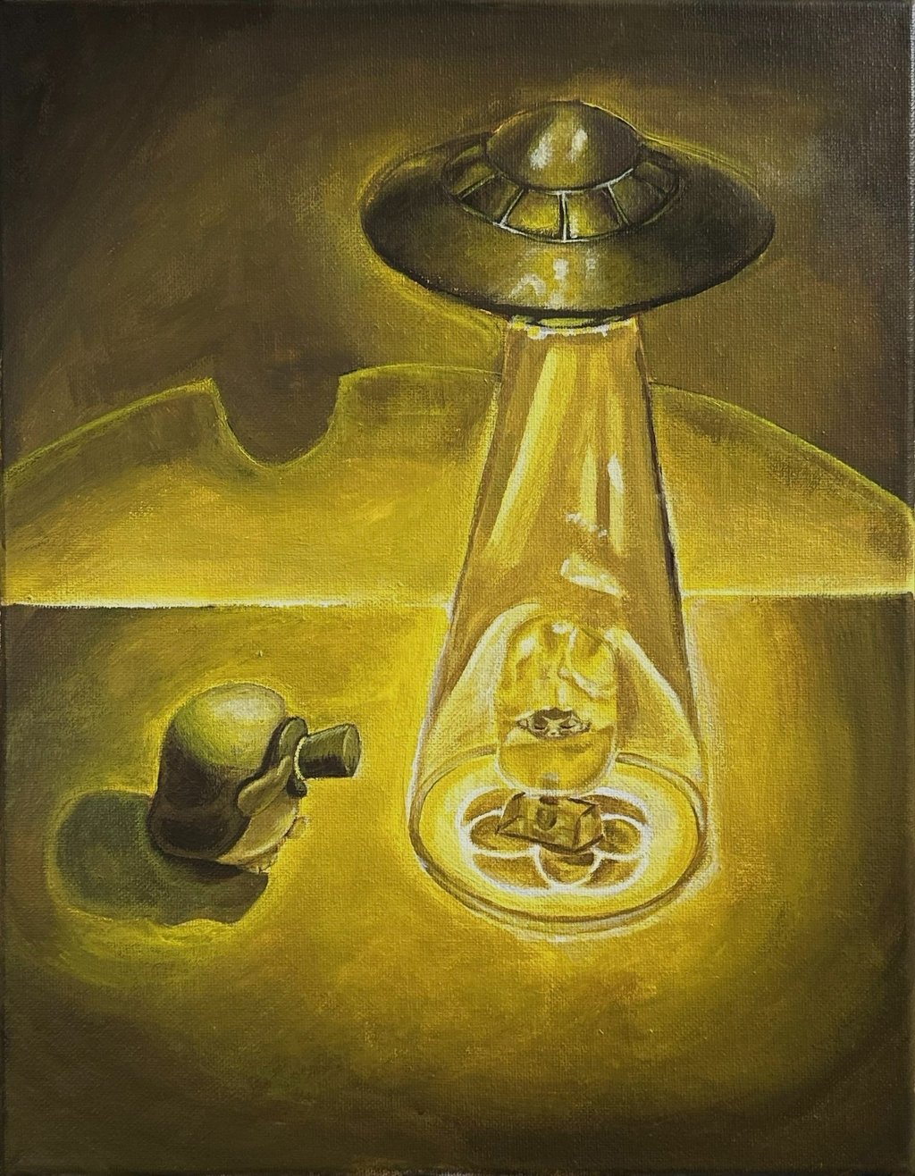 "Alien Abduction," Acrylic Paint on Canvas, 14 in x 11 in, Fall 2025, ART 2150 Introduction to Painting