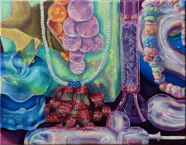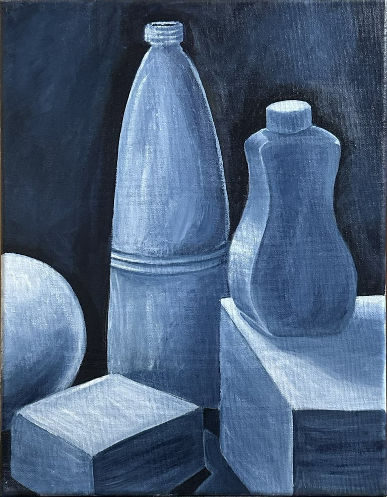 "Bottles", Acrylic Paint on Canvas, 14 in x 11 in, Fall 2025, ART 2150 Introduction to Painting